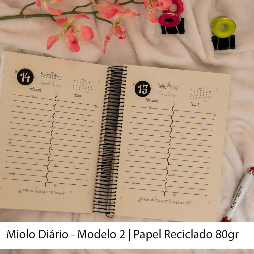 - Agenda Bidiária - Calendário - Plano de Gastos - Agenda (12 ou 16 meses) - Notas | Deve indicar nas observações a duração pretendida