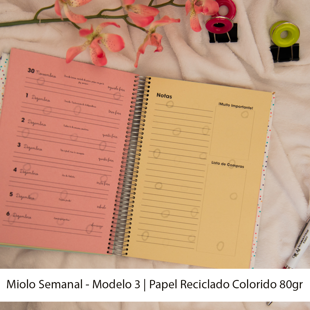 - Agenda Semanal - Calendário - Plano Mensal - Plano de Gastos - Agenda (12 ou 16 meses) - Notas | Deve indicar nas observações a duração pretendida